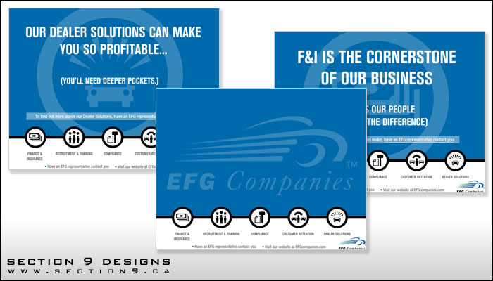 This was a small flash site for EFG Companies. The look of this site was derived from their print advertisements. Animation and interactivity helped add emphasis to their message.