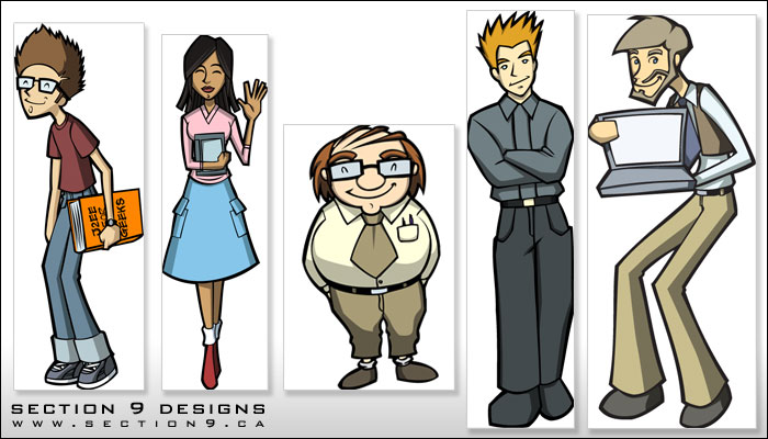 We were asked to design and create a series of cartoon characters that would be used in a flash site they were working on.